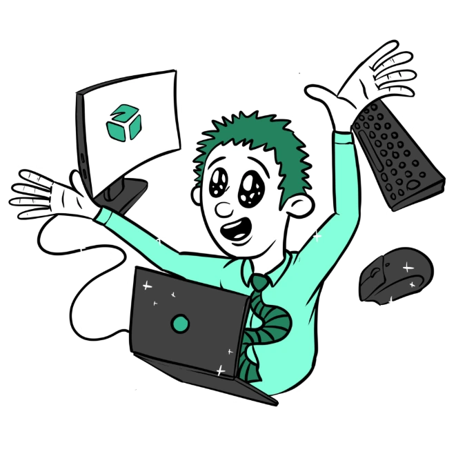 IT-teemad võivad vahepeal ajada hulluks, nagu juhtus pildil oleva mehega. Seepärast ei ole Sa GreenDice'i kogukonnas üksi, vaid saad luua süsteemist meile pöördumispileti, mille lahendamise eest vastutame või anname adekvaatset nõu.